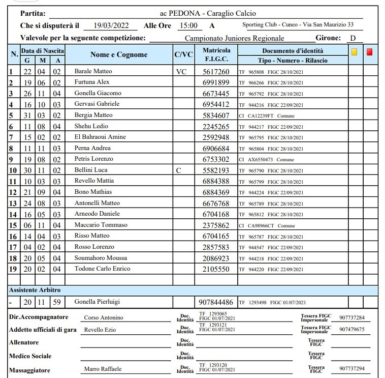 PEDONA vs Caraglio Calcio 3-4