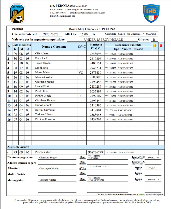 Arbitro: Kevin Luigi Aurelio Averaldo (Cuneo)