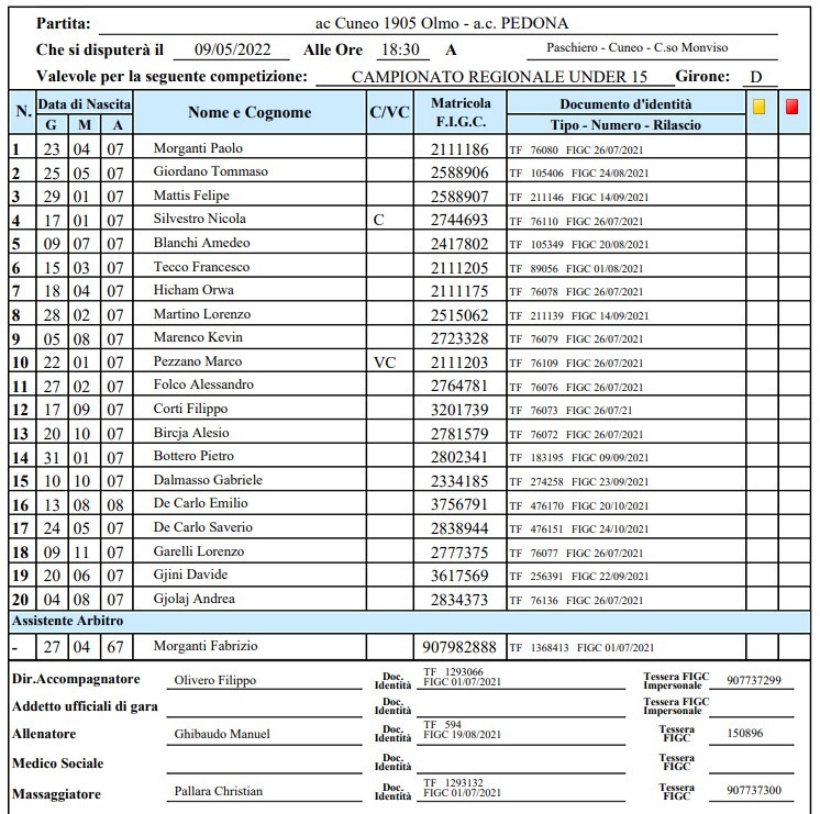 Arbitro: Manfred Mballa Mbia (Cuneo)