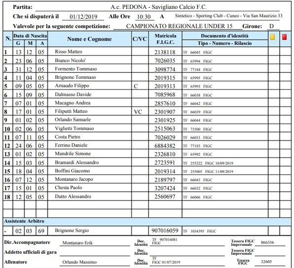 Arbitro: Fabio Mazzucchi (Cuneo)