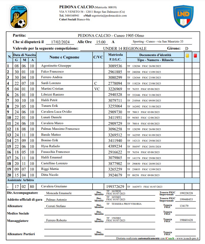 PEDONA vs Cuneo 1905 1-2 (Cavalera Luca)