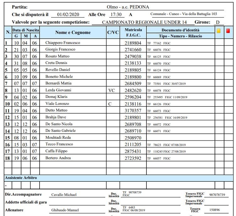 Arbitro: Leonid Prince-bel Viang (Cuneo)