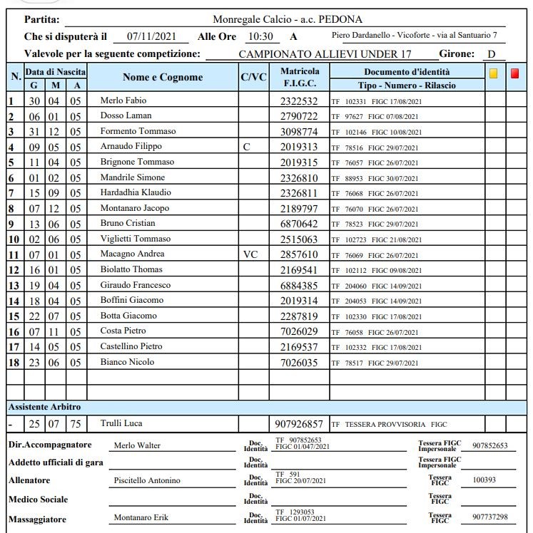 Arbitro: Luca Ribero (Cuneo)