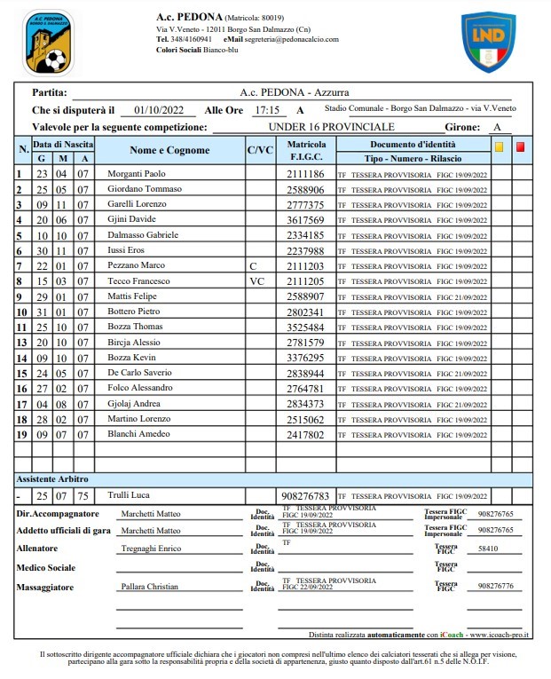 PEDONA vs Azzurra 10-0