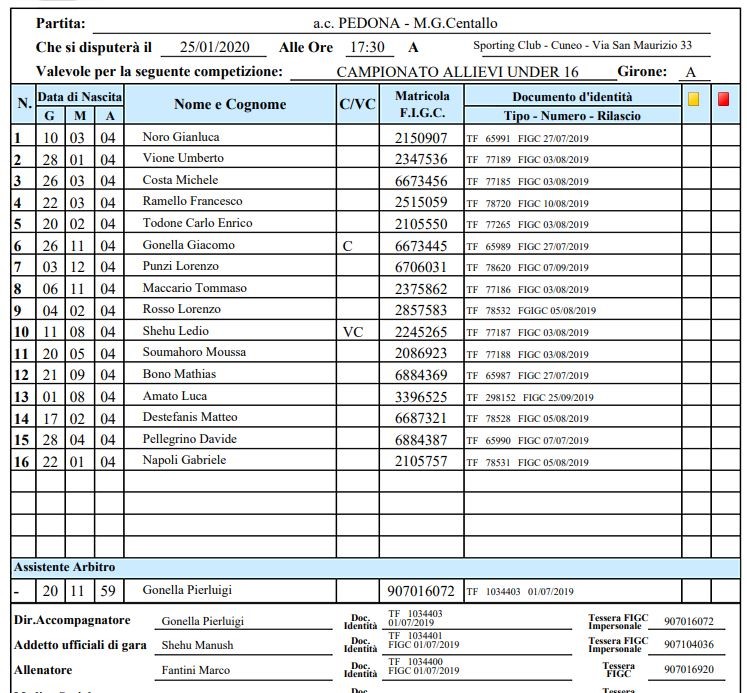 Arbitro: Giorgio Girardi (Cuneo)