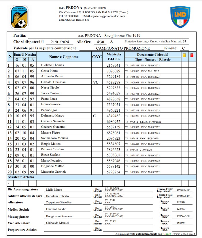 PEDONA vs Saviglianese Fbc 1919 1-1 (Dalmasso)