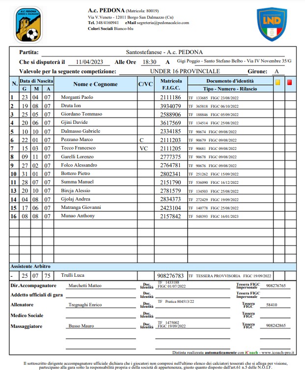 Arbitro: Silvano Matta (Asti)