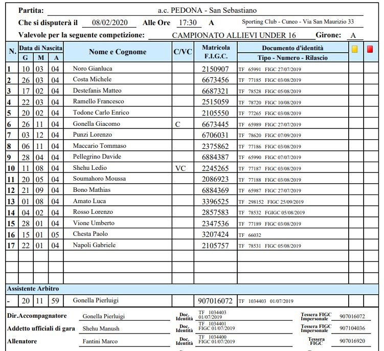 Arbitro: Fabio Mazzucchi (Cuneo)