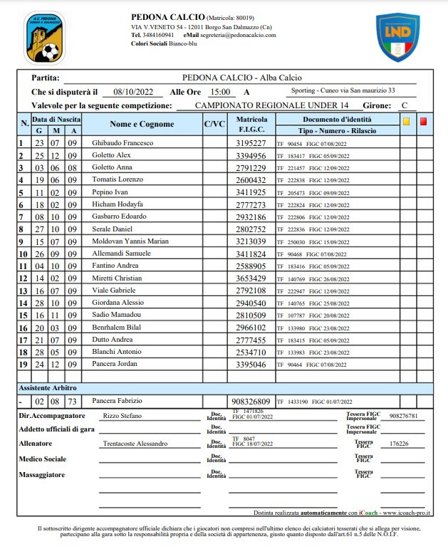 Arbitro: Christian Casanova Panzon (Cuneo)