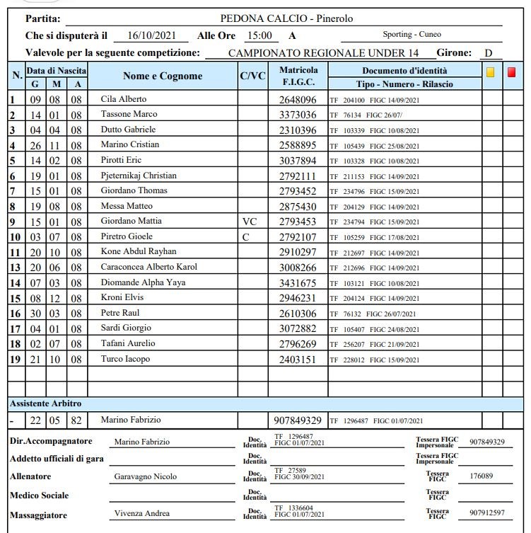 Arbitro: Emanuele Bottero (Cuneo)