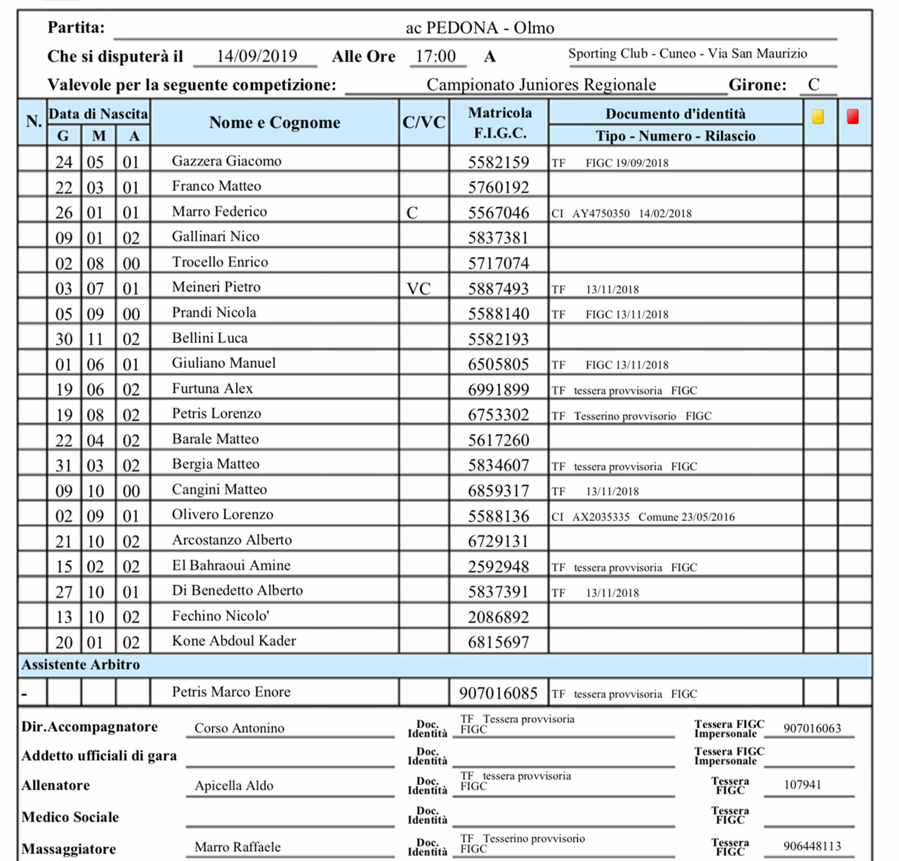 arbitro: Luca Cassara' (Cuneo)