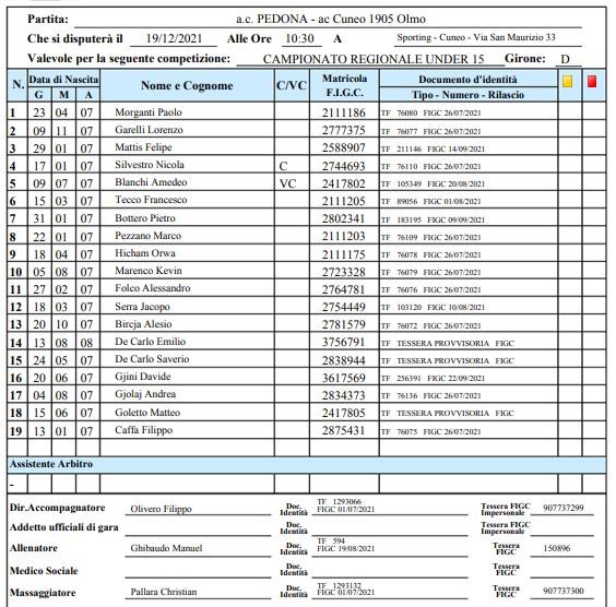 PEDONA vs Cuneo 1905 Olmo 1-3