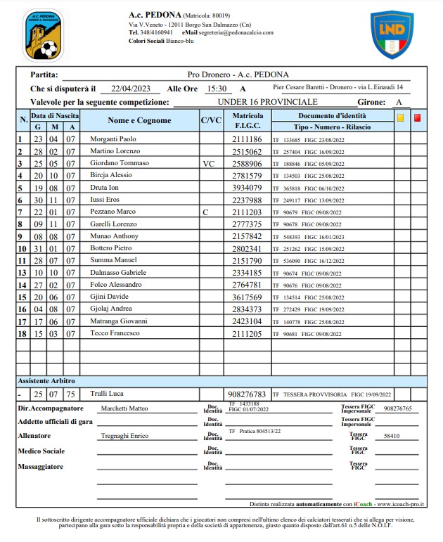 Arbitro: Leonid Prince-bel Viang (Cuneo)