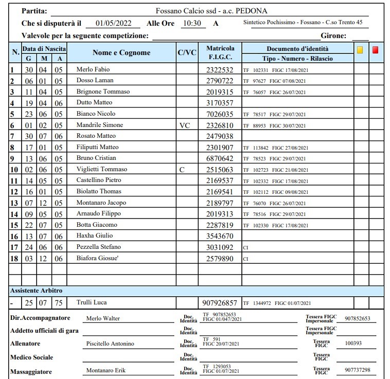 Fossano Calcio vs PEDONA 5-1