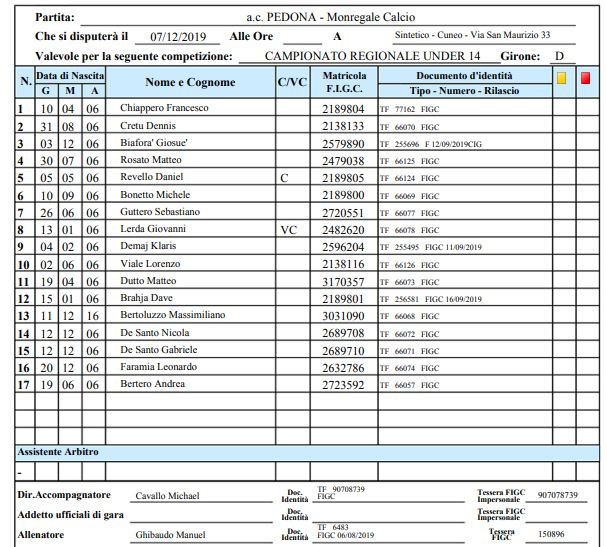 Arbitro: Alberto Beltritti (Cuneo)