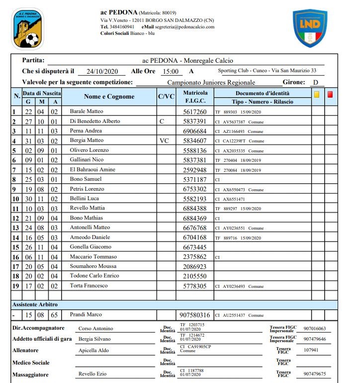 Arbitro: Erik Luciano (Cuneo)