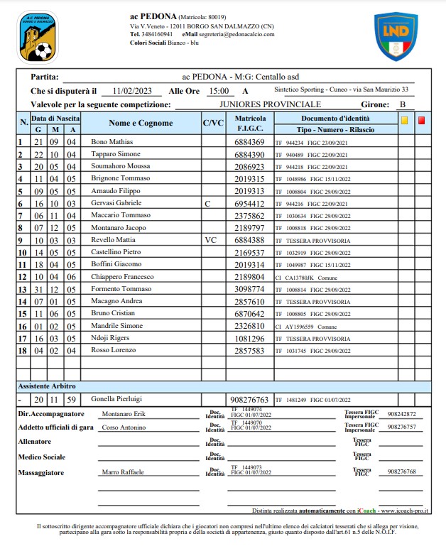 PEDONA vs M.G. Centallo asd 6-0
