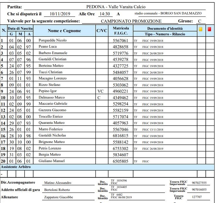 Arbitro: Efrem Santiano (Pinerolo)
