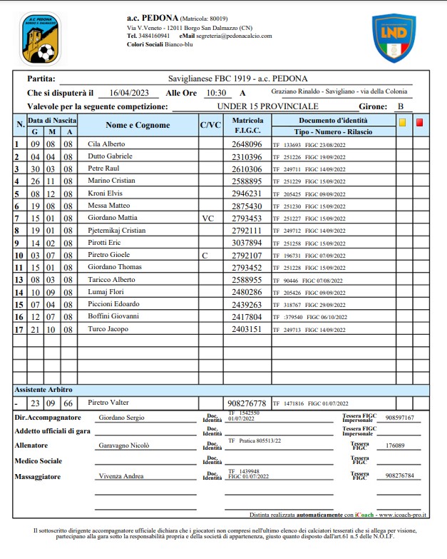 Saviglianese FBC 1919 vs PEDONA 1-5