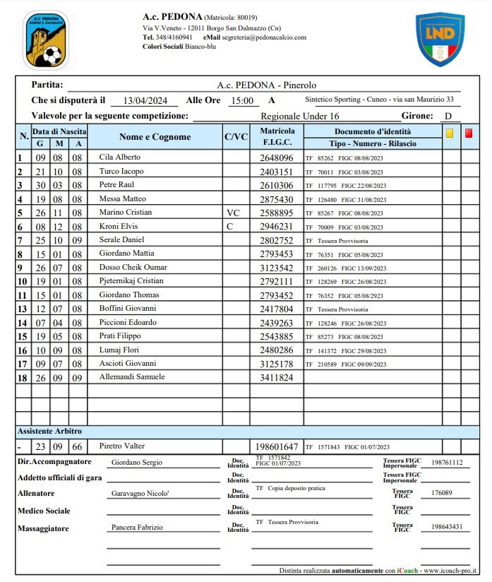 PEDONA vs Pinerolo 1-5 (Kroni)
