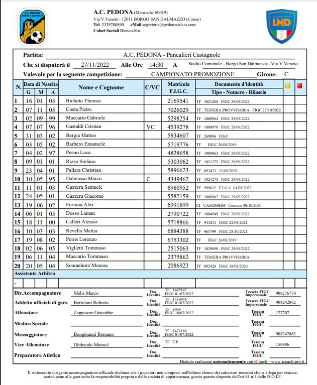PEDONA vs Pancalieri Castagnole 2-1