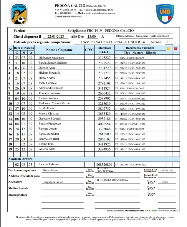 Saviglianese FBC 1919 vs PEDONA 5-1