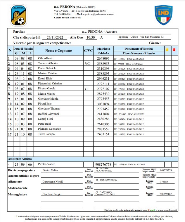 Arbitro: Roberto Gagliardi (Cuneo)