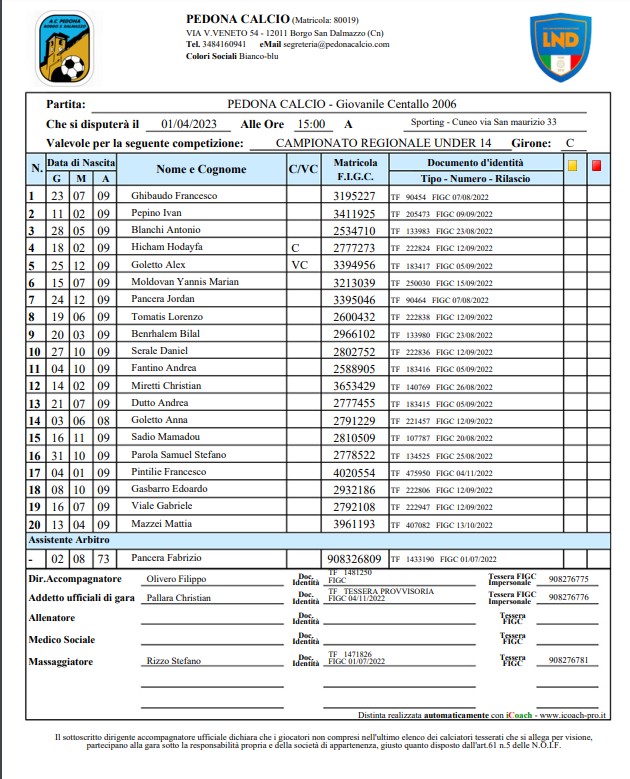 Arbitro: Matteo Caraglio (Cuneo)