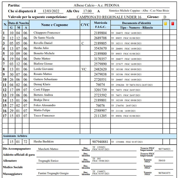 Albese Calcio vs PEDONA 4-1
