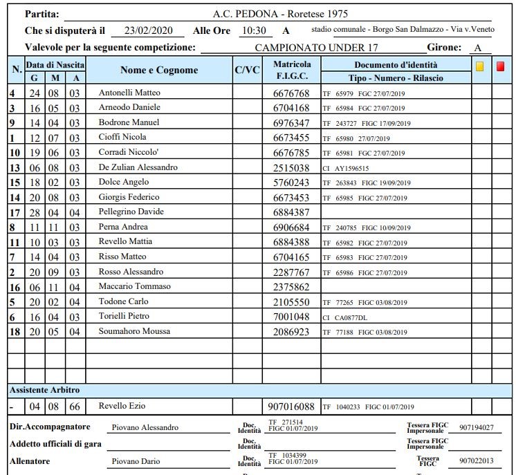 Arbitro: Leonid Prince-bel Viang (Cuneo)