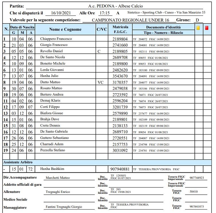 Arbitro: Emanuel Frroku (Cuneo)