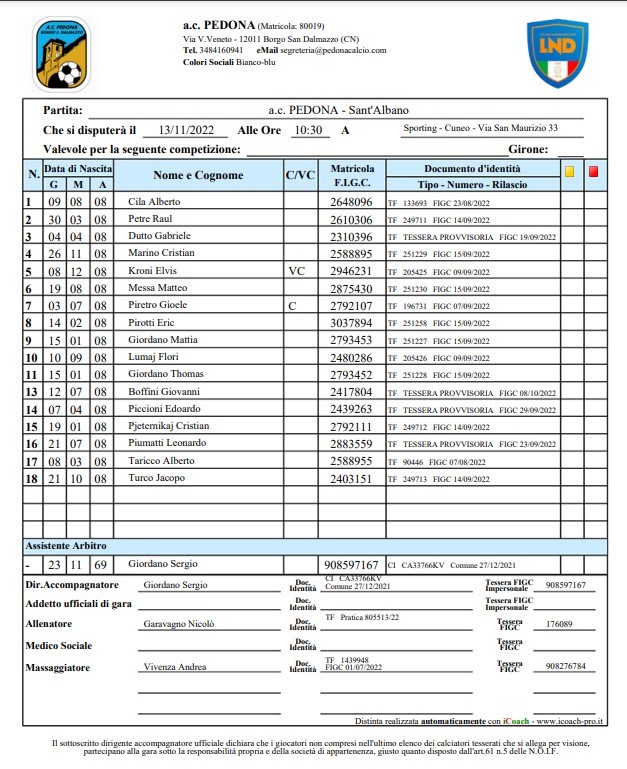 Arbitro: Alessandro Chiari-Arioni (Cuneo)