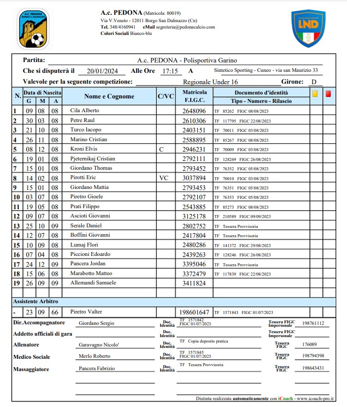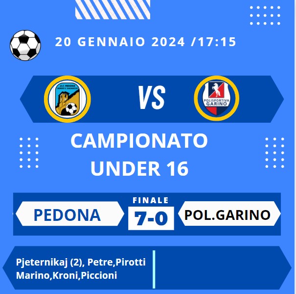 PEDONA vs Polisportiva Garino 7-0 (Pyeternikaj,Pirotti,Petre,Kroni,Marino,Pyeternikaj,Piccioni)