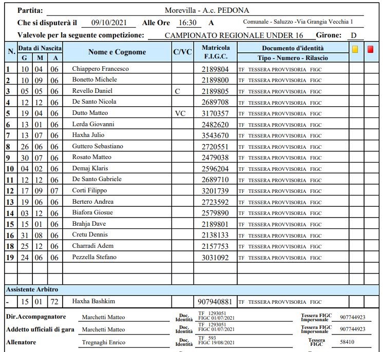 Arbitro: Josue' Samuel Perez Gomez (Pinerolo)