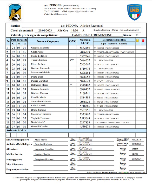 Arbitro: Guido Oscar Ruggieri (Torino)