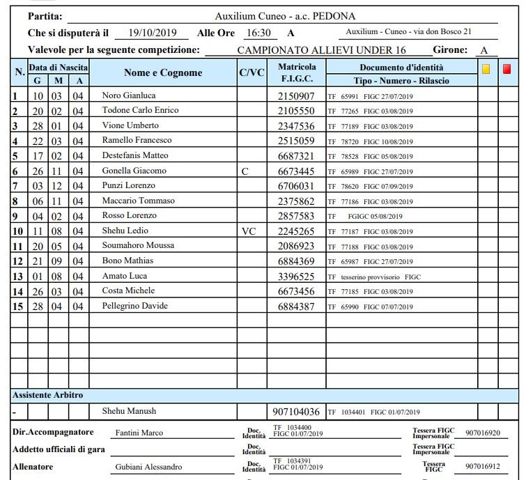 Arbitro: Emanuel Frroku (Cuneo)