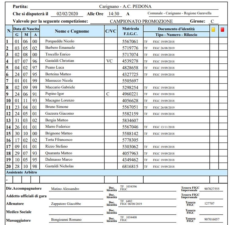 Marcatori: Pepino, Massucco,Bruno,Gastaldi N.