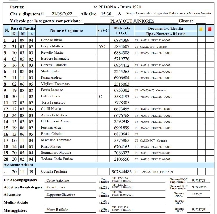 Arbitro: Luigi Mancullo (Bra)