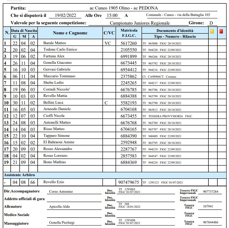 Cuneo 1905 Olmo vs PEDONA 0-0