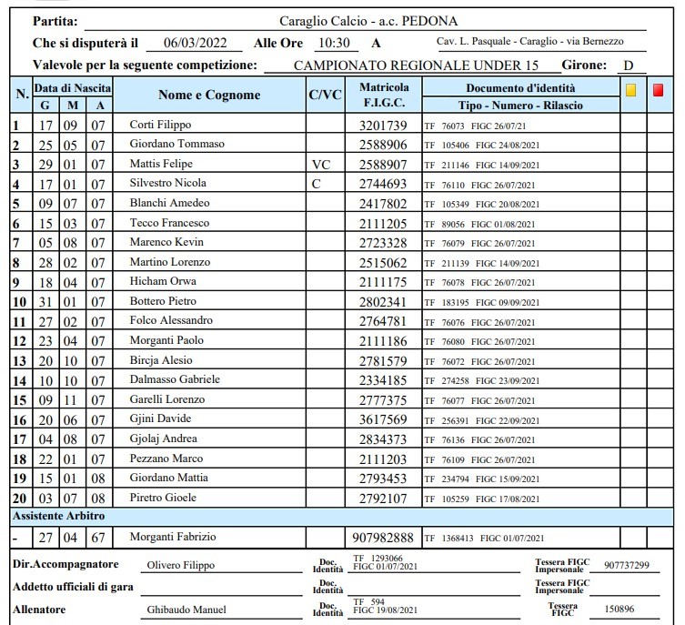 PEDONA vs Caraglio Calcio 3-4