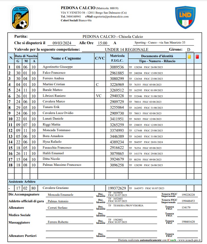 PEDONA vs Chisola Calcio 1-2 (Lunati)