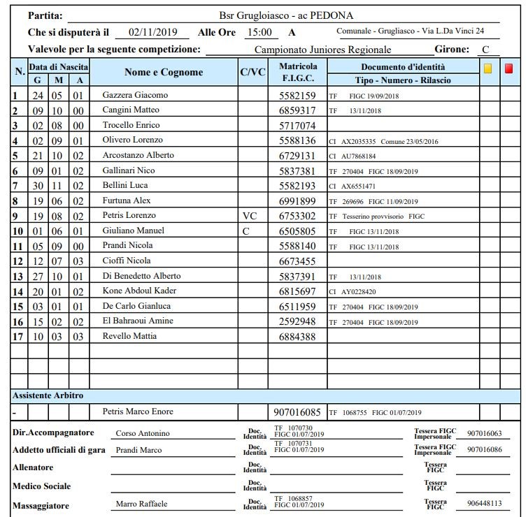 Bsr Grugliasco vs PEDONA 0-3