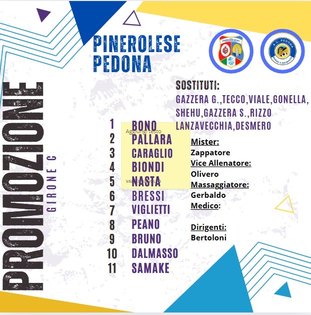 Pinerolese Sport vs PEDONA 0-4 (Dalmasso,Peano,Samake,Rizzo)