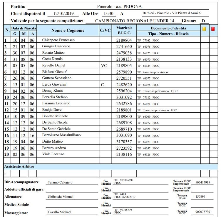 Arbitro:Alessandro Ciaiolo (Pinerolo)