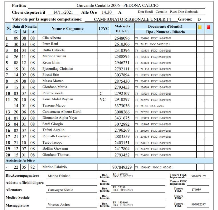 Giovanile Centallo 2006 vs PEDONA 0-0