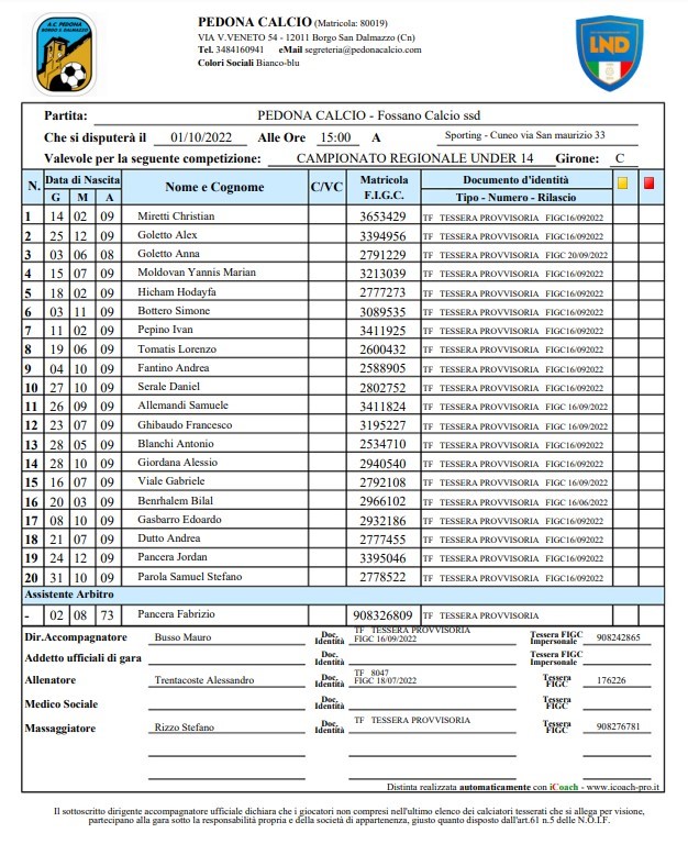 Arbitro: Leonid Prince-bel Viang (Cuneo)