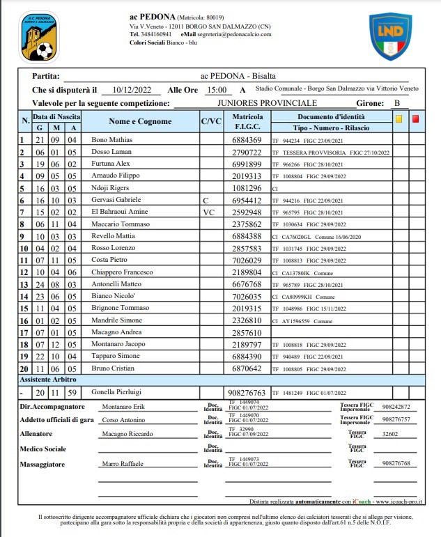 Arbitro: Vittorio Cottura (Cuneo)