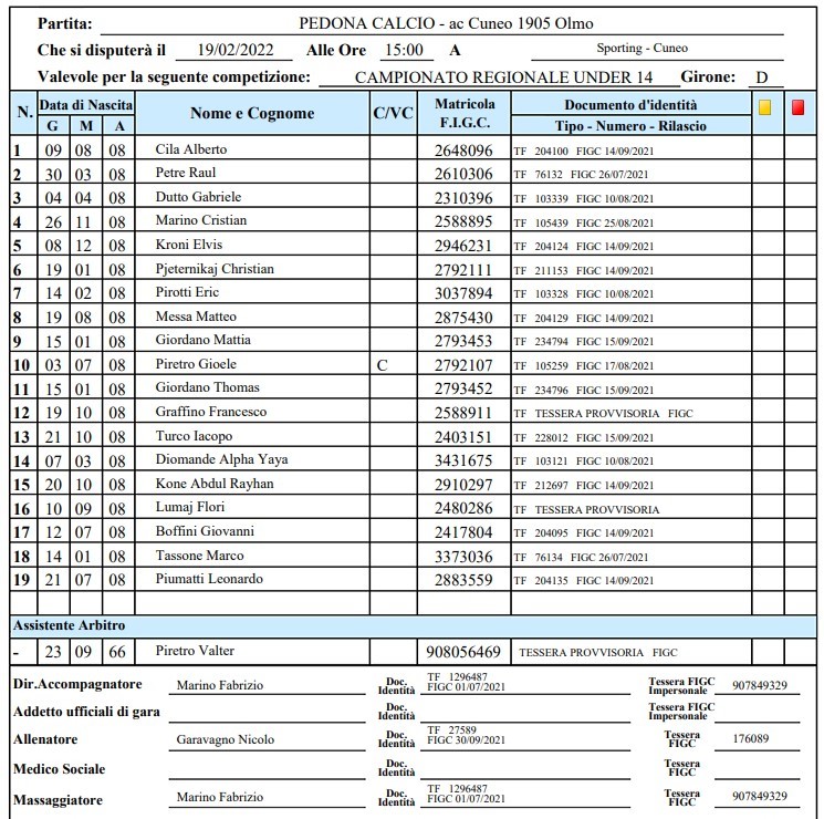 PEDONA vs Cuneo 1905 Olmo 1-1