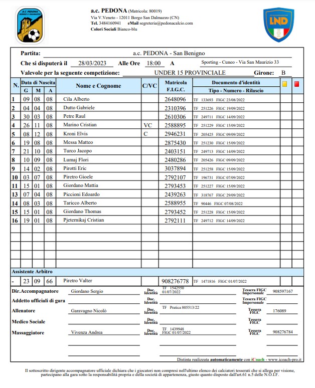 Arbitro: Luca Cucchietti (Cuneo)