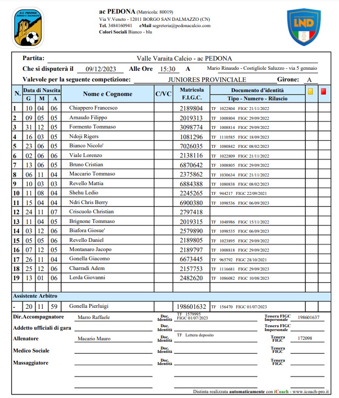 PEDONA vs Caraglio Calcio 3-4